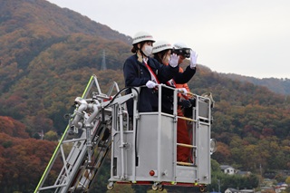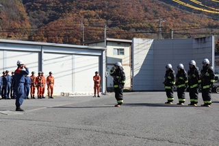 | 11月20日(木)消防本部にて、「消防救助活動基本訓練」の消防長査閲を実施しました。 「消防救助活動基本訓練」は、今年度、長野県消防学校初任科課程を修了し現場に配属された新職員を対象に実施され、知識や技術、そして災害現場での連携と対応能力向上を図ることを目的としています。 約1ヶ月間の訓練では、結索やロープブリッジ渡過、約15mからの懸垂降下訓練などの基本訓練の他、火災想定や車両を用いた救助訓練等、実践的で高度な技術を習得しました。 訓練を始めた当初は不安な様子も見受けられましたが、査閲当日は自信に満ち溢れた姿を披露してくれました。 今後、消防士として各種訓練や現場活動を経験し、更なる成長を期待しています。 |