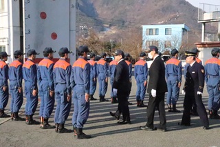 | 千曲坂城消防本部では、令和8年の仕事始めにあたり、管理者による通常点検を行いました。 また、仕事始め式では管理者による訓示と職員2名に対し勤続20年の表彰がありました。 |
