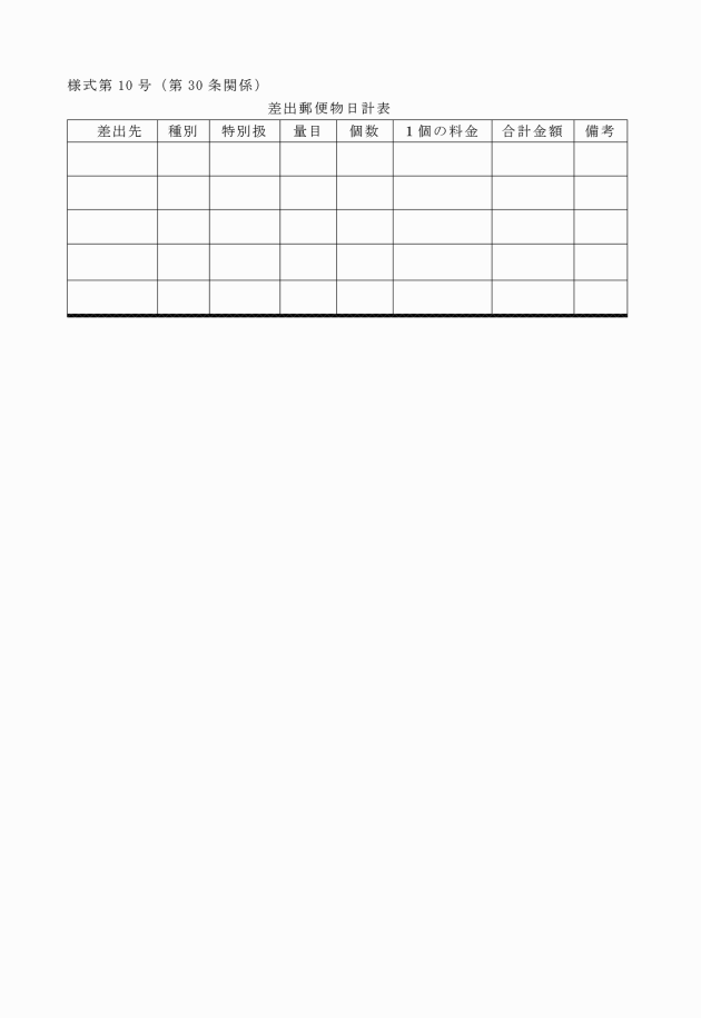 第10条 到達した文書及び小包・小荷物・物品(以下「物品等」という。)は、総務課総務係及び消防署庶務係(以下「文書主管係」という。)において、次の各号により処理しなければならない。