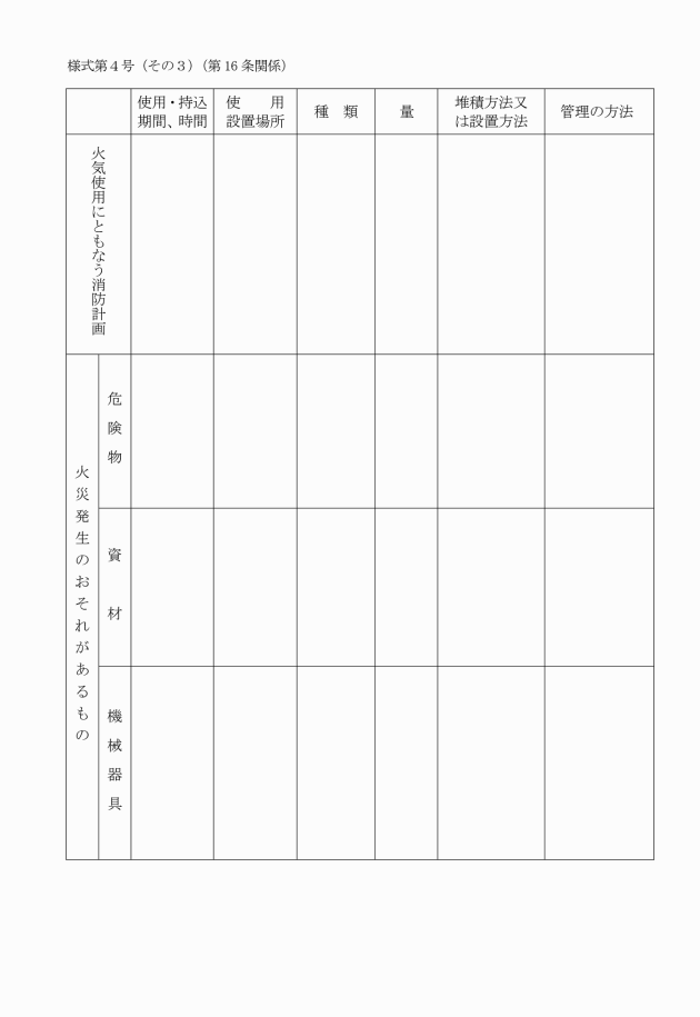 3 工事中の防火対象物における消防計画にあっては、工事中の消防計画届出書(様式第4号)により届出させるものとする。