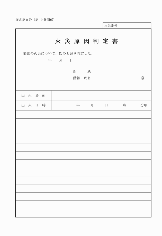 第19条 調査員は、調査結果を次の書類により消防長に報告しなければならない。