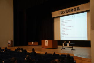 3月1日(火)から始まる春季全国火災予防運動に伴い、管内事業所の防火管理者を対象に防火管理者会議を開催しました。会議には、161の事業所から防火管理者が出席し、火災予防運動の推進事項の周知徹底のほか、防災映画を上映し火災予防思想の高揚を図りました。