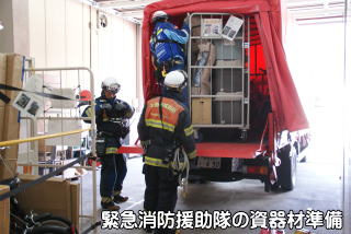 | 東日本大震災から5年になる3月11日(金)、千曲坂城消防本部では、静岡県でマグニチュード9クラスの南海トラフ巨大地震が発生したという想定で、職員の非常招集、消防組織法第44条の規定に基づく緊急消防援助隊の応援出動の訓練を行いました。この訓練は、13時17分に非常招集を抜き打ちで発令したもので、災害情報メールで情報を伝達し、連絡を受けた職員は所属する各消防署などに参集しました。また、長野県緊急消防援助隊は静岡県へ出動するという想定で、当本部は消防車両等計6台18名が戸倉上山田消防署に集結し応援出動の体制を整えて出動、応援先でエアテントを設営し野営の準備、バイク隊による偵察訓練を行いました。 |