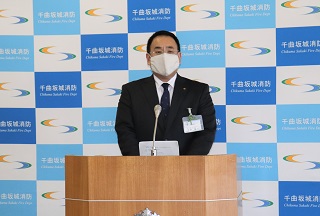 | 千曲坂城消防本部では、令和3年の仕事始めにあたり、管理者による通常点検を行いました。 また、仕事始め式では「収束の見えない新型コロナウイルス感染症に対して引き続き適切に 対応して欲しい」との訓示と職員2名に対し勤続20年の表彰がありました。 |